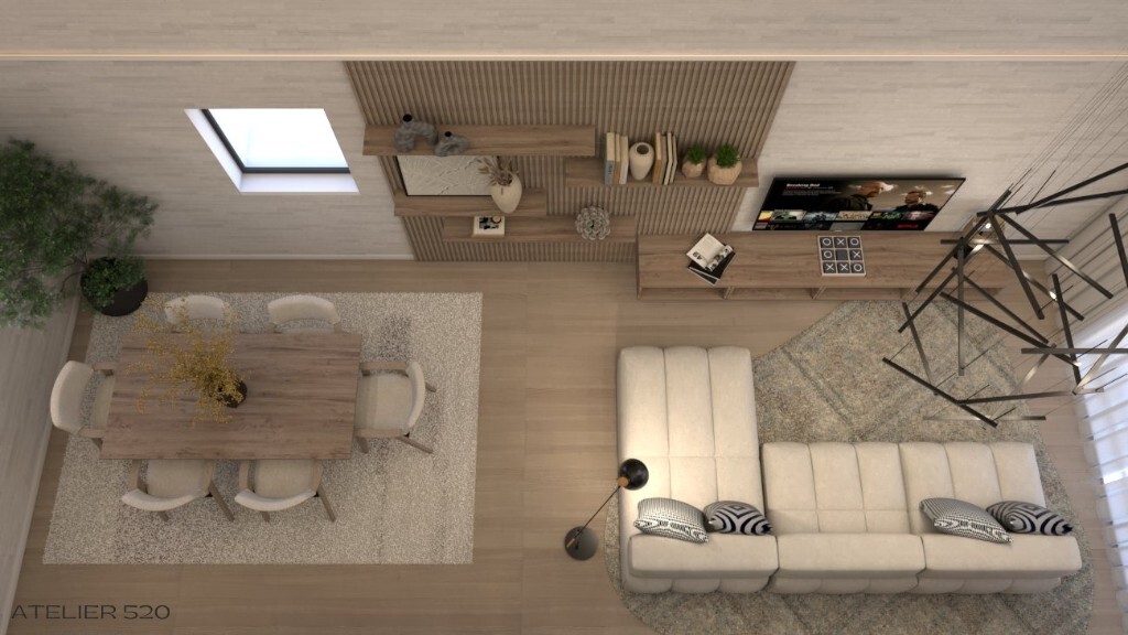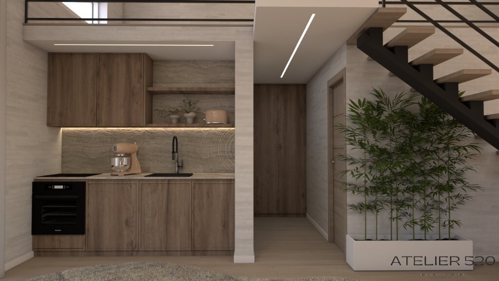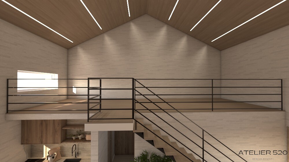 Elle comprend un séjour-cuisine ouvert, une chambre, une salle de bain et une mezzanine avec possibilité d'aménager une salle de bain.